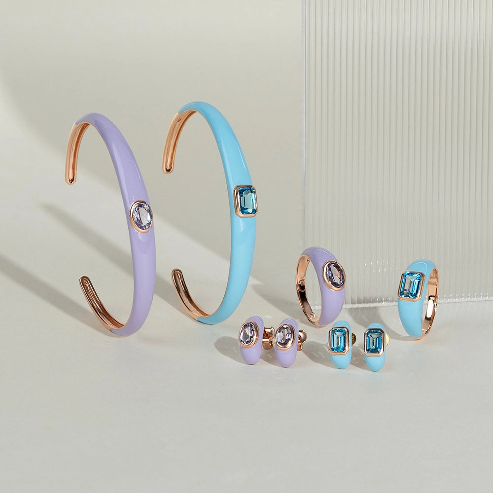 Available in hues of golden amber, icy blue, and blush pink, Topaz brings warmth to the winter season and elegance to every style.