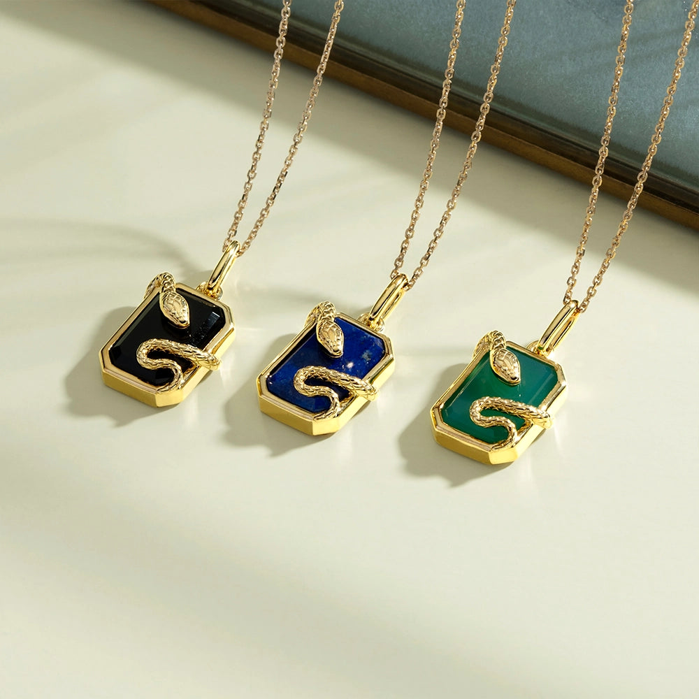 A stunning Art Deco inspired pendant featuring a striking dyed green chalcedony with a central white topaz gemstone. This pendant is accentuated by a sleek black enamel bale which holds to the matching sterling silver necklace. Add this vintage-inspired pendant to upgrade your neck stack.