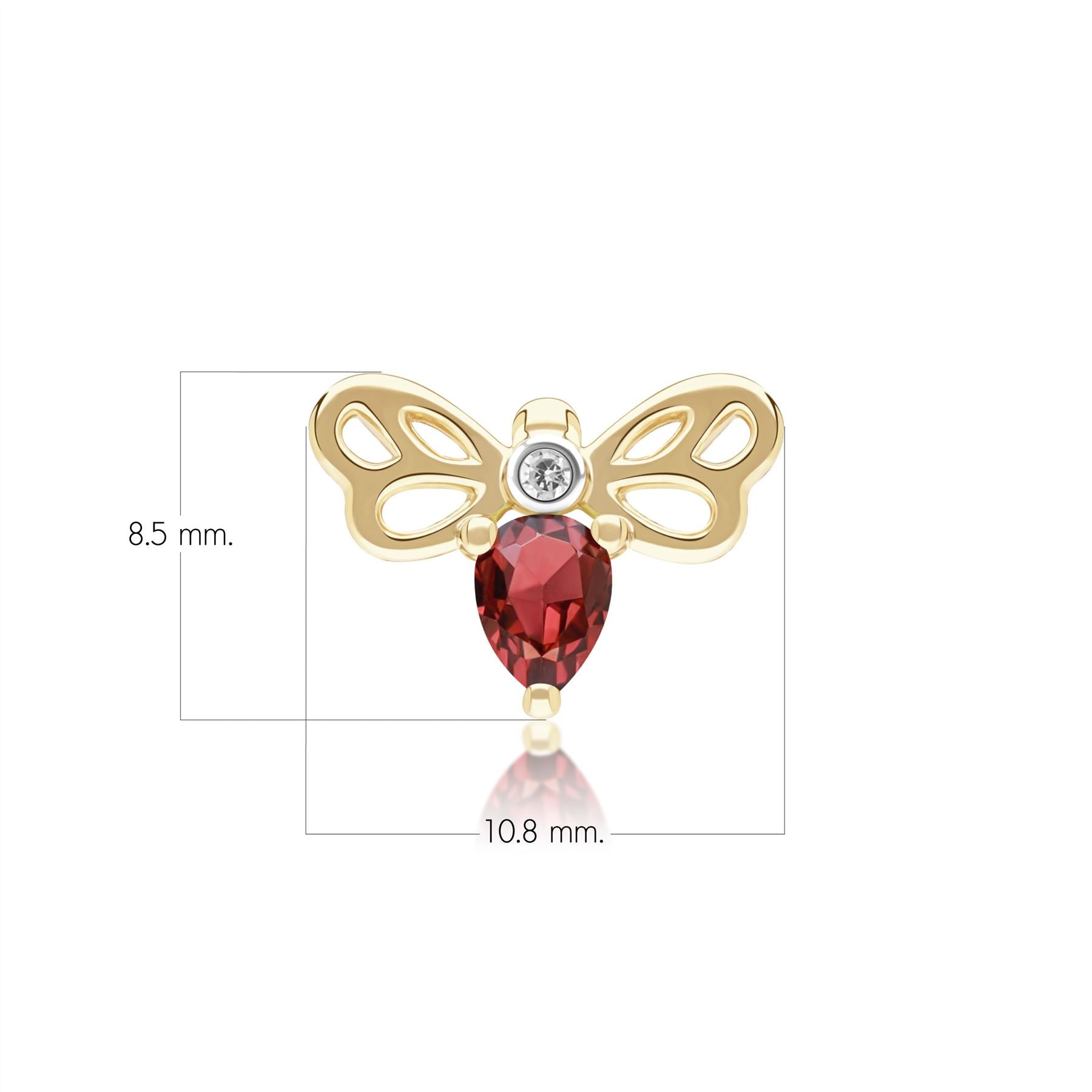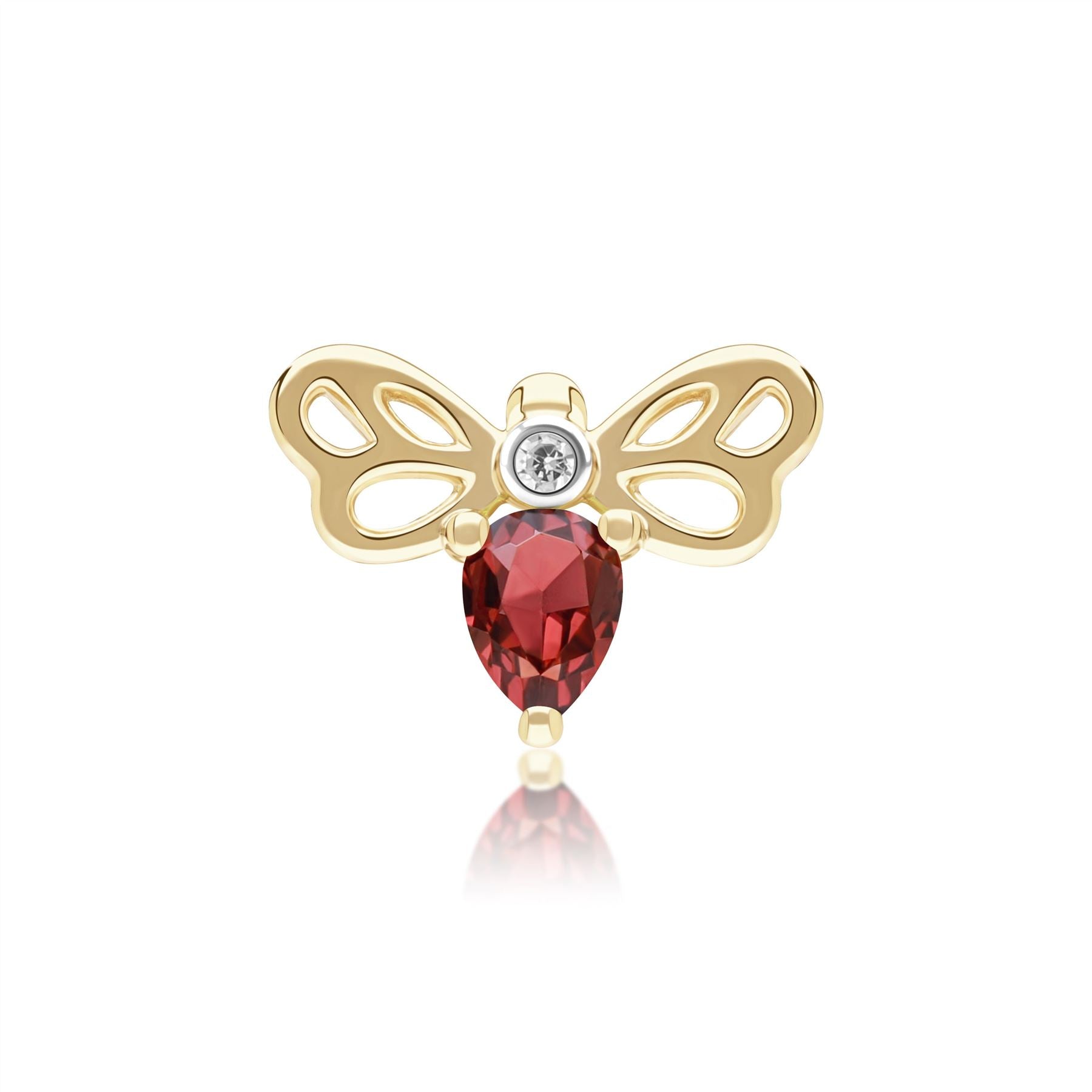 Glowing with warm charm, this honeycomb-inspired bee pin features rich garnet and diamond accents set in 9ct yellow gold to create a striking yet elegant fine jewellery design. The bee motif highlights the deep colour and sparkle of the gemstones while maintaining a whimsical, refined aesthetic. Crafted in 9ct yellow gold.