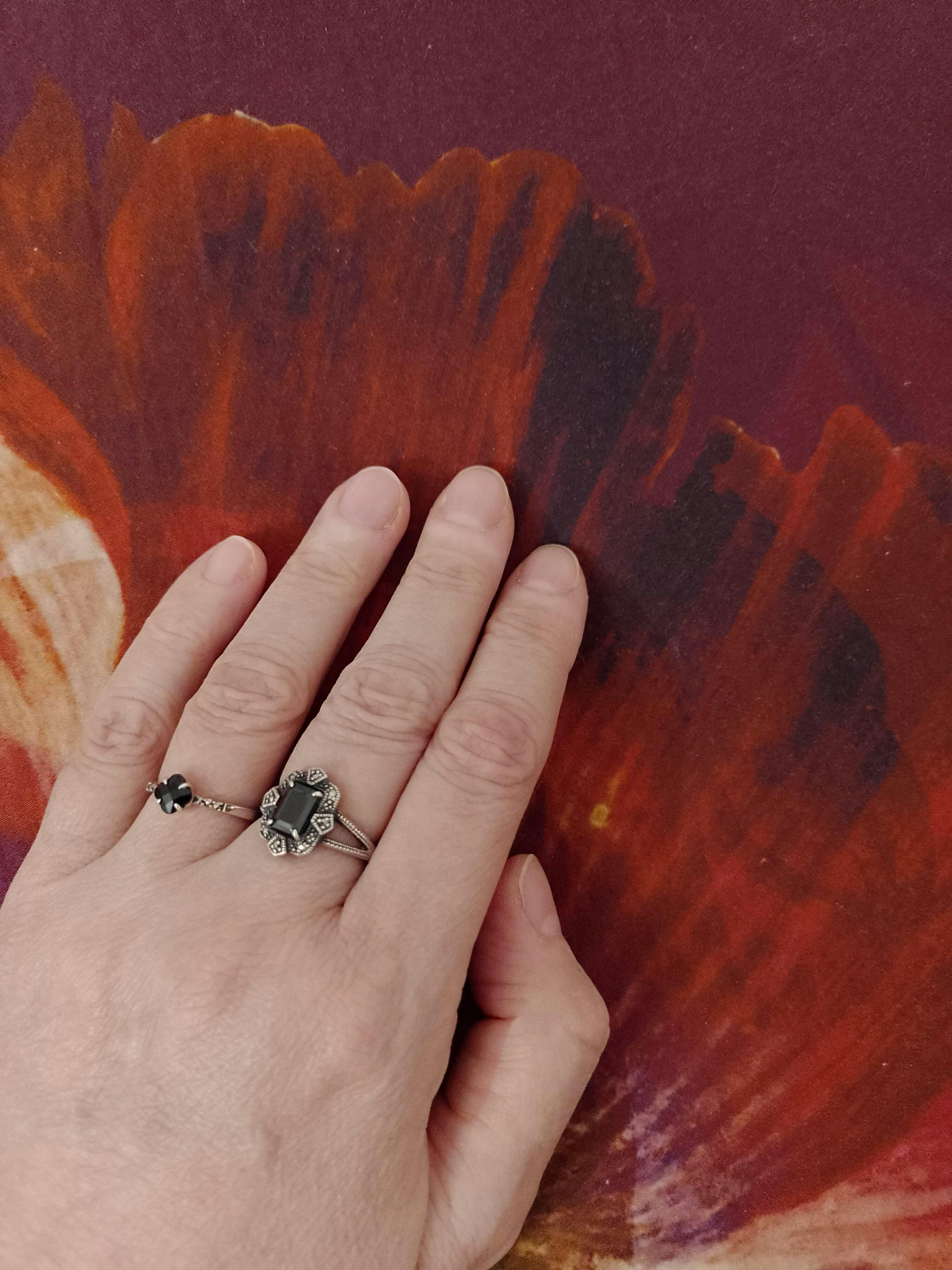 This delicate Onyx and marcasite ring is perfect for all occasions. It was once thought that onyx eliminates negative thinking, heightens the senses and improves intuition.