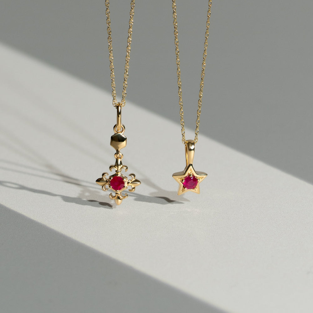 ECFEW™ Ruby Fleur De Lis Pendant Necklace In 9ct Yellow Gold