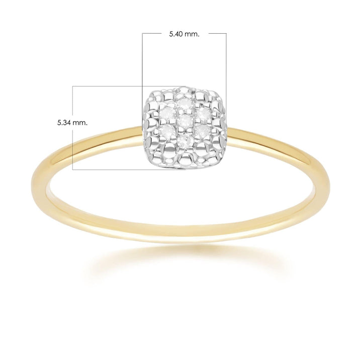 Perfect for everyday wear. This elegant 9ct yellow gold ring features an array of dainty diamonds on a square pave setting along a sleek band.