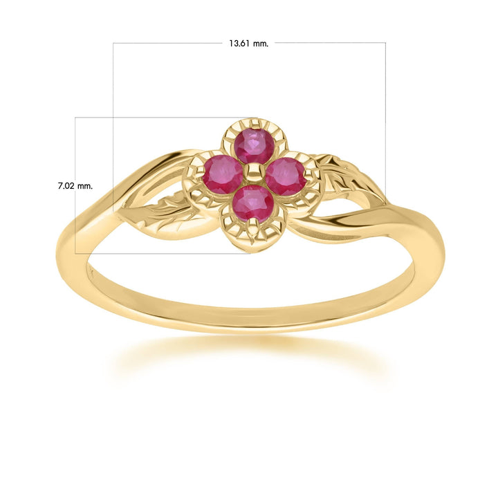 135R2048039 Floral Round Ruby Ring in 9ct Yellow Gold 4