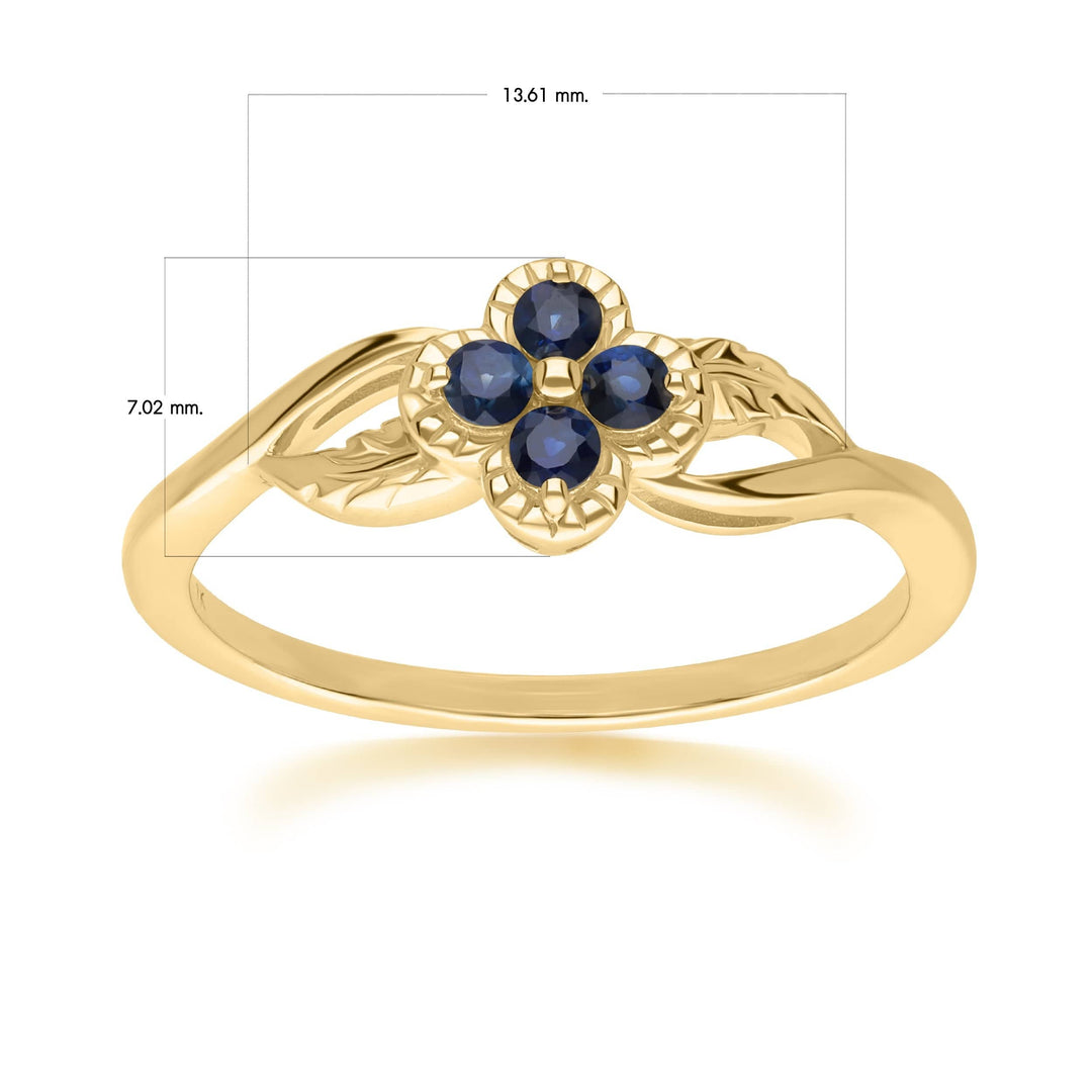Floral Round Sapphire Ring in 9ct Yellow Gold
