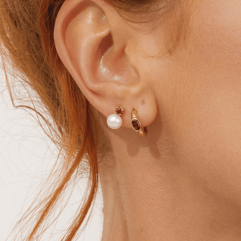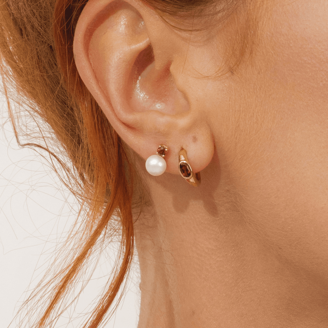 Modern Classic Oval Garnet Huggie Earrings in 18ct Gold Plated Silver
