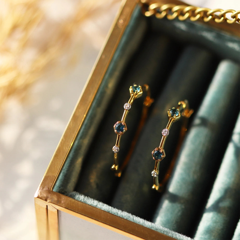 The Modern Glam Collection embodies the spirit of party season. Sparkling topaz is set into beautiful hoops, bracelets, rings and necklaces for layers that turn heads, catch eyes and compliment your special occasion.