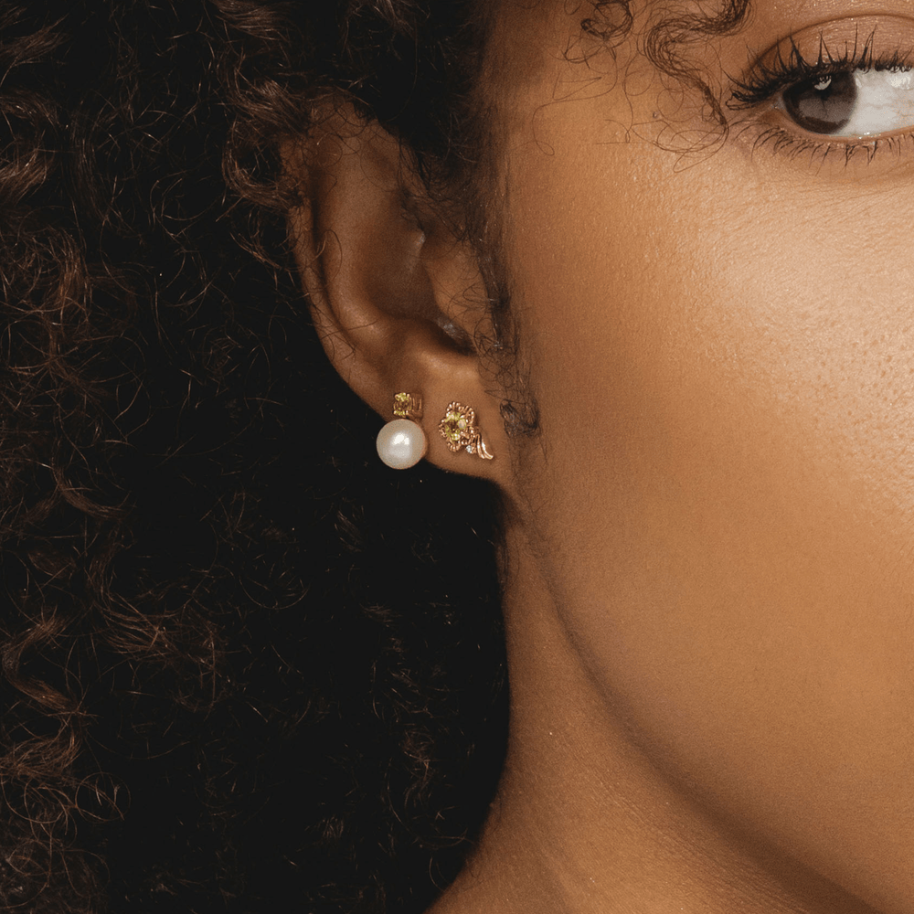 Modern Pearl & Peridot Stud Earrings in 9ct Yellow Gold