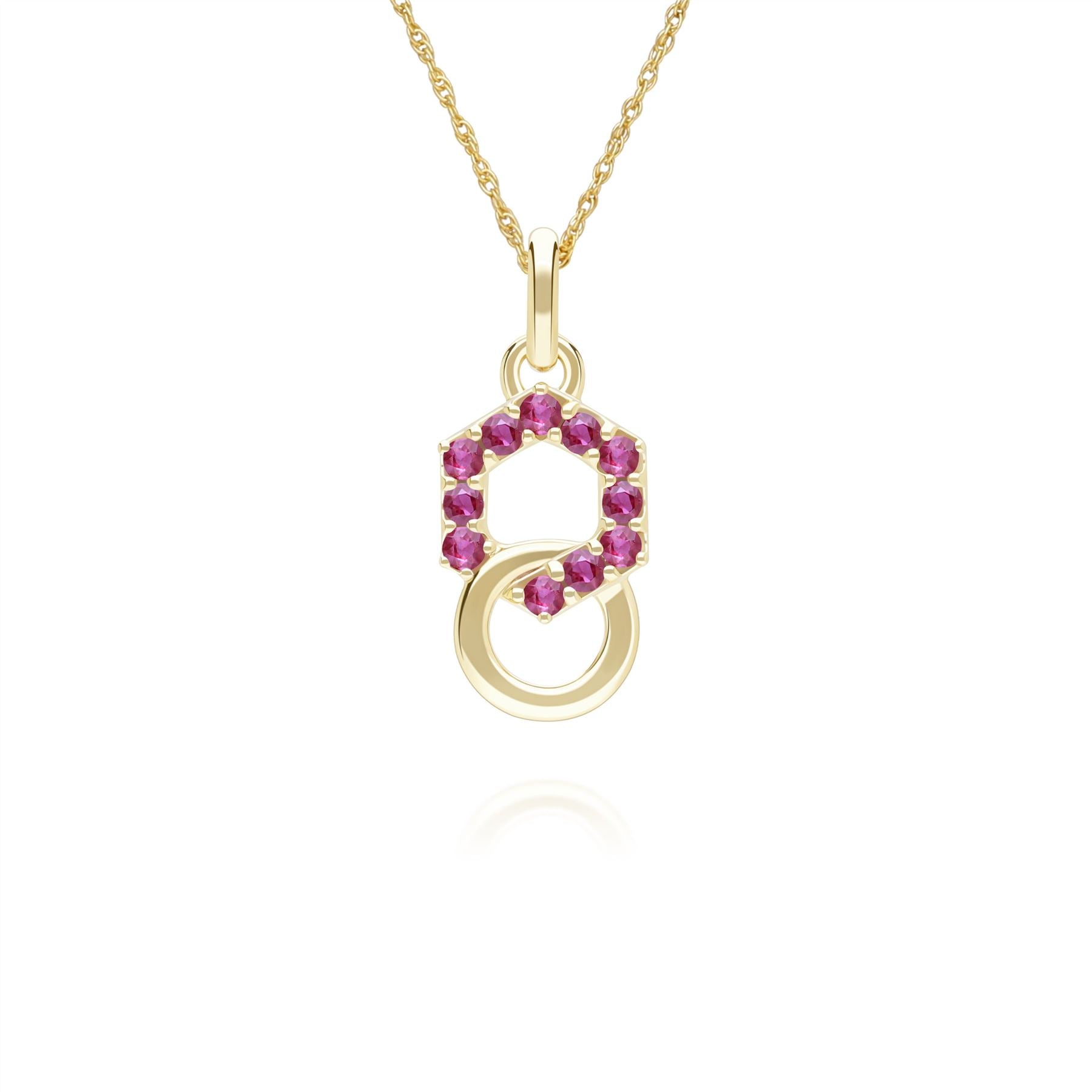 Geometric Hexagon and Round Linked with Prong set Ruby Pendant in 9ct Yellow Gold