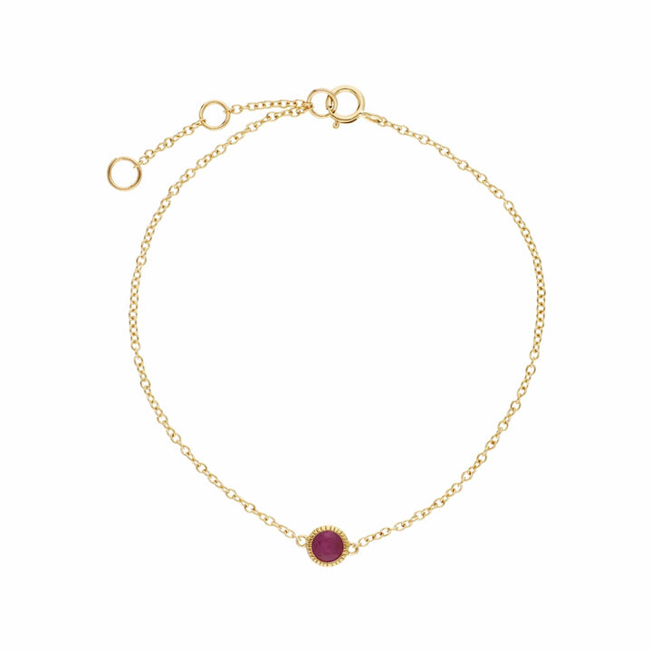 Classic Single Stone Round Ruby Milgrain Bracelet in 9ct Yellow Gold