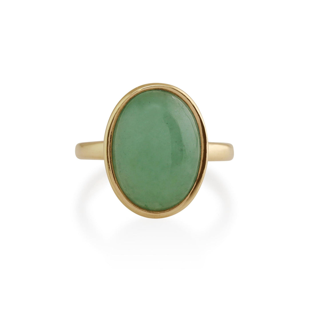 Statement Oval Jade Ring in 9ct Yellow Gold