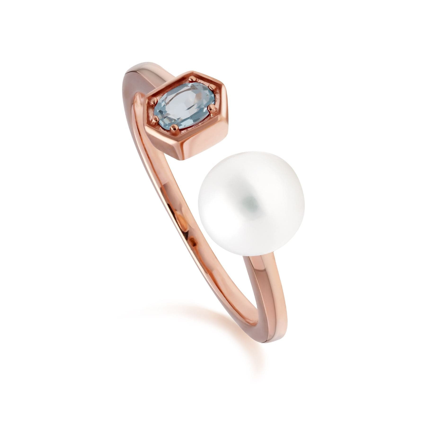 A chic rose gold plated open ring with a focal round cultured freshwater pearl and a blue topaz gemstone. Mix and stack this playful ring with your jewellery favourites from Gemondo's Modern Pearl Collection.