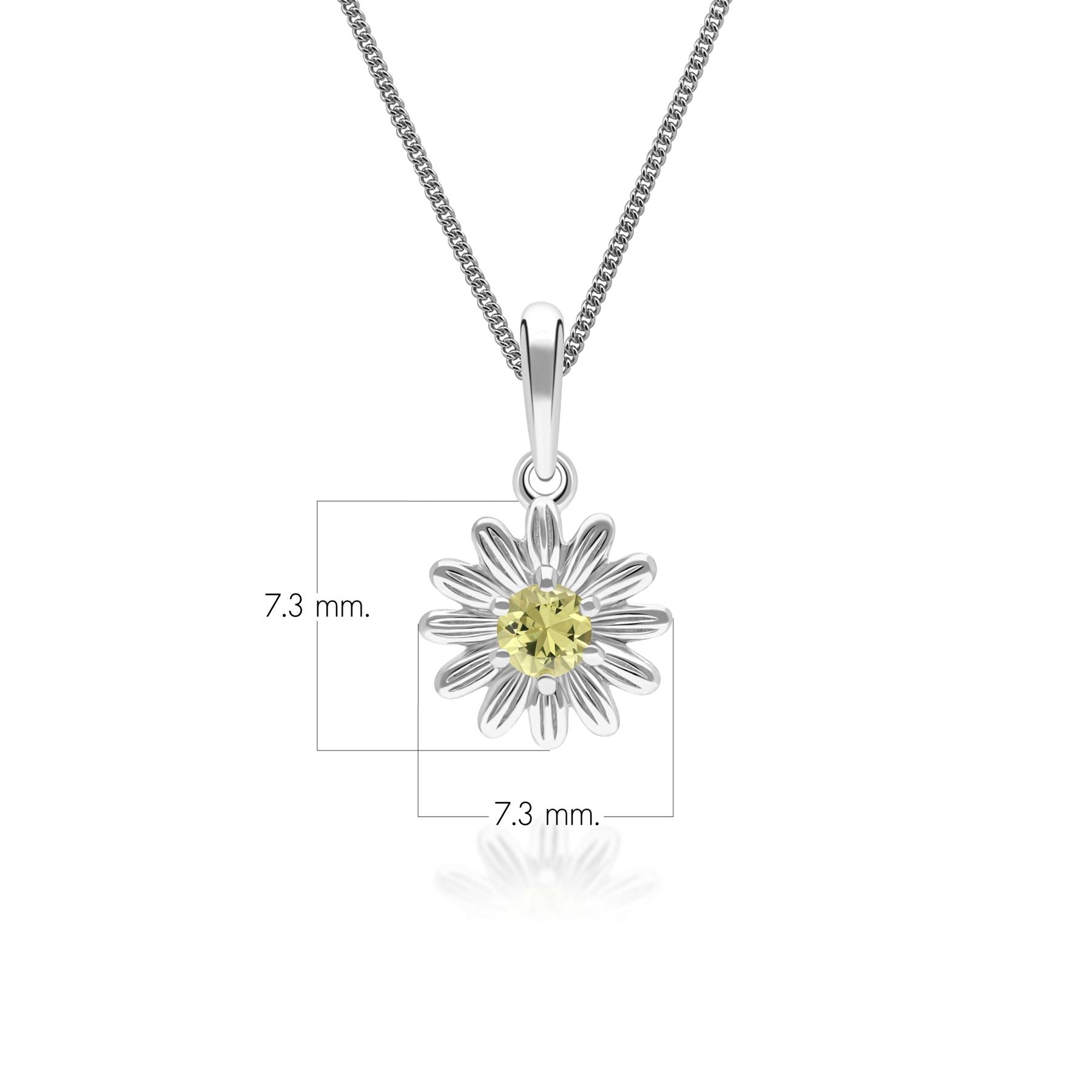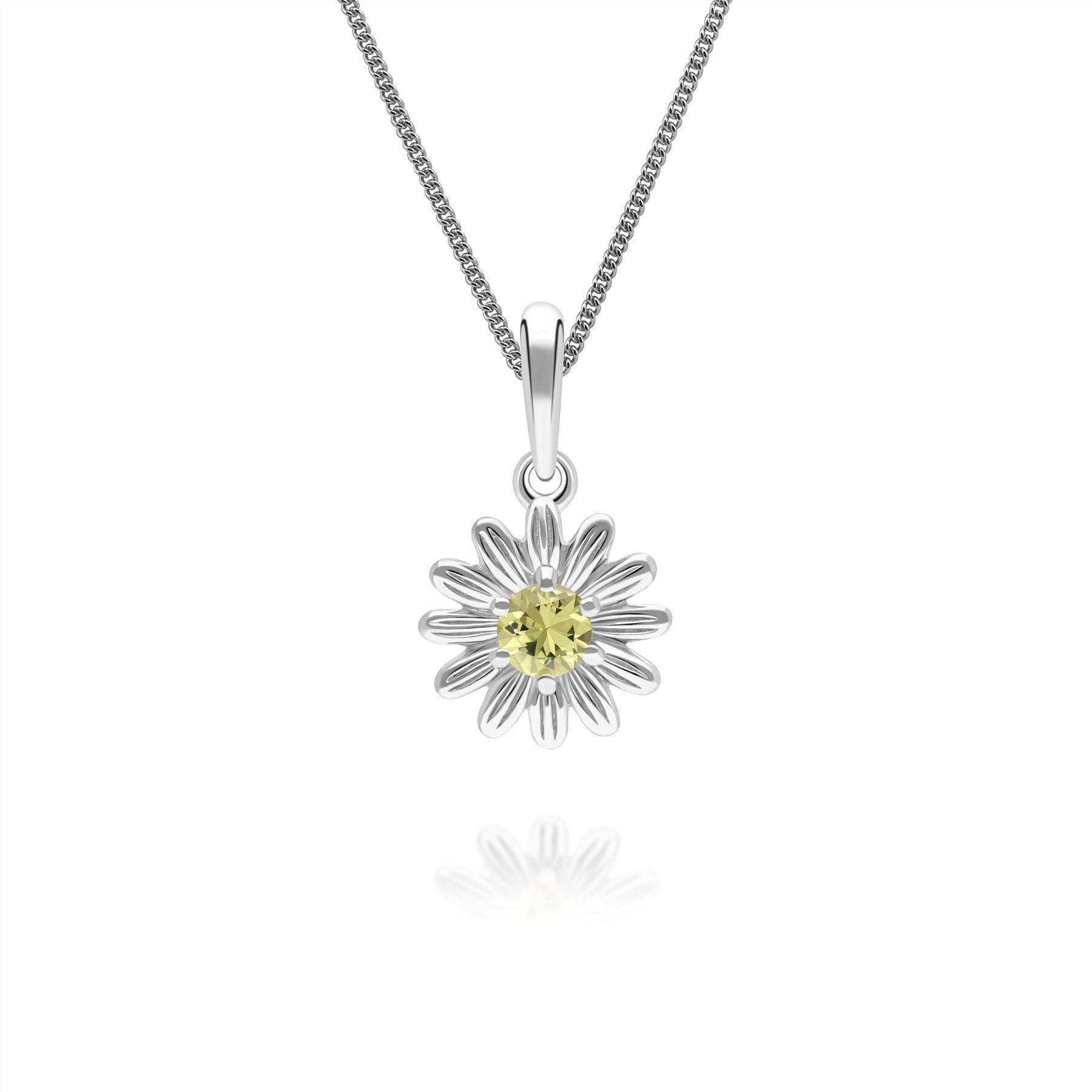 Reflecting delicate floral charm, this gardenia daisy pendant necklace features a round yellow sapphire set in 9ct white gold to create a bright and elegant fine jewellery design. The flower-inspired silhouette highlights the natural beauty and vibrant colour of the gemstone while maintaining a refined, timeless aesthetic. Crafted in solid 9ct white gold.