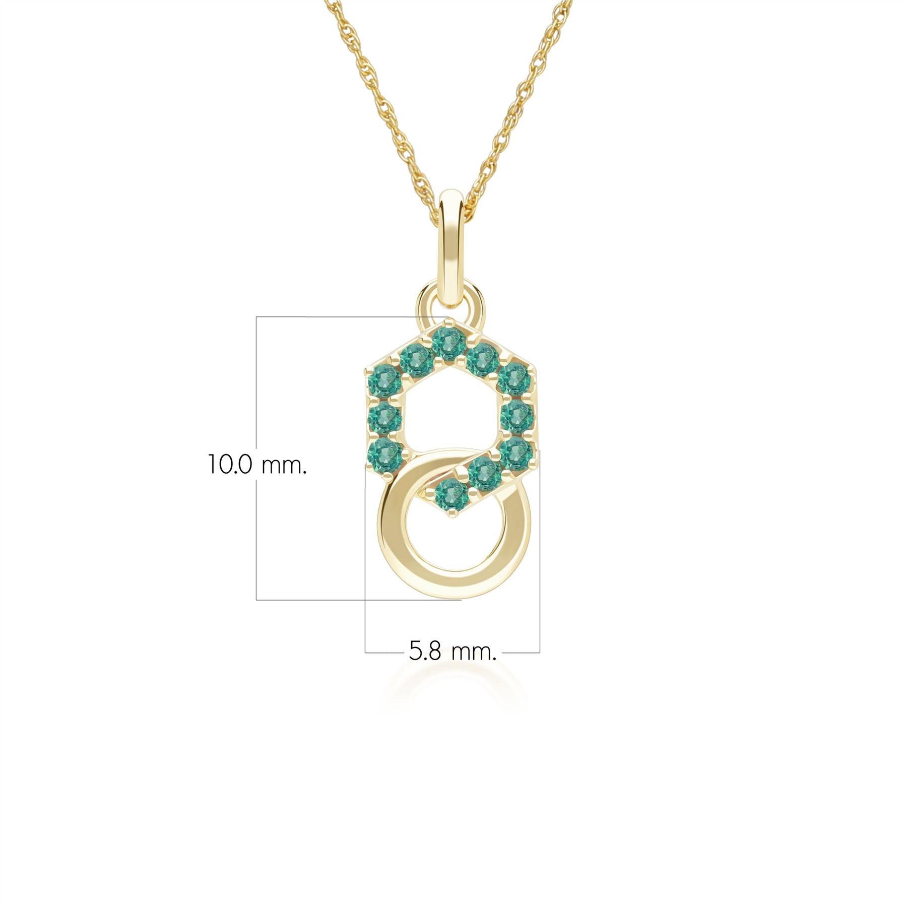 Geometric Hexagon and Round Linked with Prong set Emerald Pendant in 9ct Yellow Gold